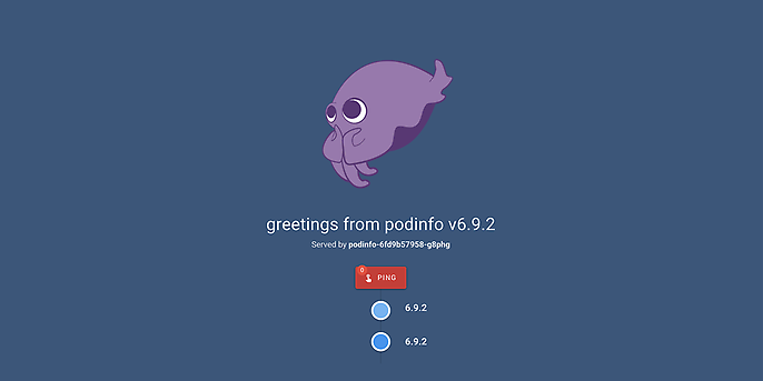 Ruft man in einem Browser fluxv2infrademo.staging.io auf sieht man die Podinfo Statusseite.