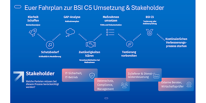 Die obigen Bausteine spiegeln die Phasen eines vollständigen C5-Umsetzungsfahrplans wider. Sie decken sowohl technische als auch organisatorisch-regulatorische Anforderungen ab.