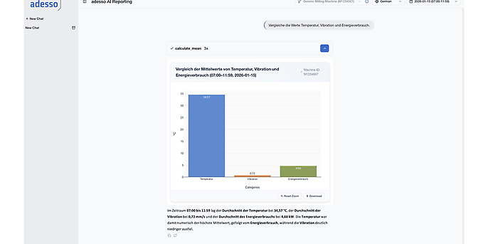 Mit unserem AI Reporting Showcase lösen wir diesen Engpass auf. Wir kombinieren die Flexibilität von KI-Agenten mit industriellen Maschinendaten, um interaktive Reports direkt im Dialog zu erstellen, ganz ohne technisches Fachwissen oder manuelle Vorarbeit.